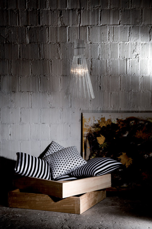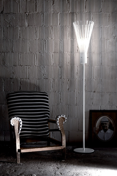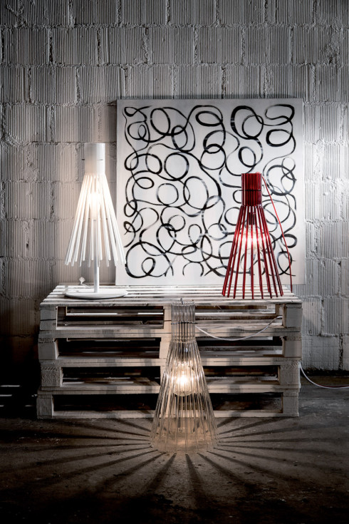 Lamp in borosilicate clear glass as table, flor lamp and suspension. A rays sculpture that creates unique transparences with its crystal catching a glimpse of its inner light source, researched design for important ambient.