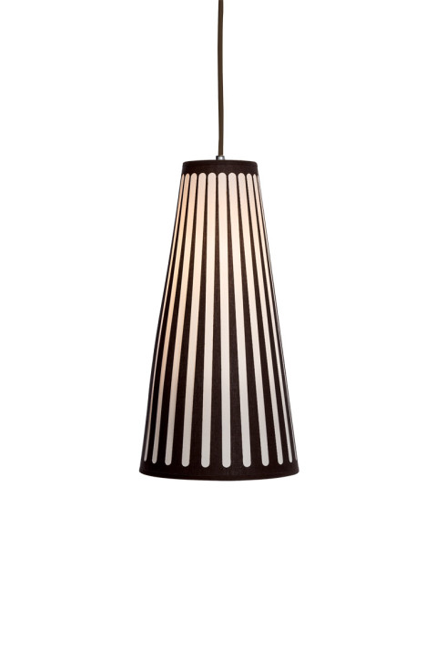 Suspension lamp with colored and cutted fabric shade. Electrical wire in colored fabric. This lamp throws a light cone strong and defined, ideal to illuminate with elegance and discreption.