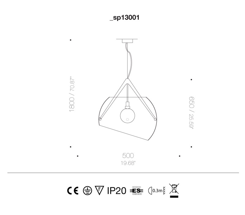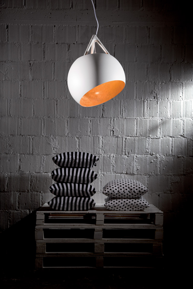 Pupilla, the new suspended lamp designed by Giancarlo Aldighieri for Feenbo, turns on 3 inner arms which hang it on the maximum diameter of the globe and permit an easy vertical inclination of 25° and a rotation of 360° on the horizontal axis. Hanging structure and globe in varnished metal.