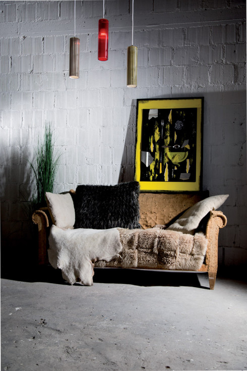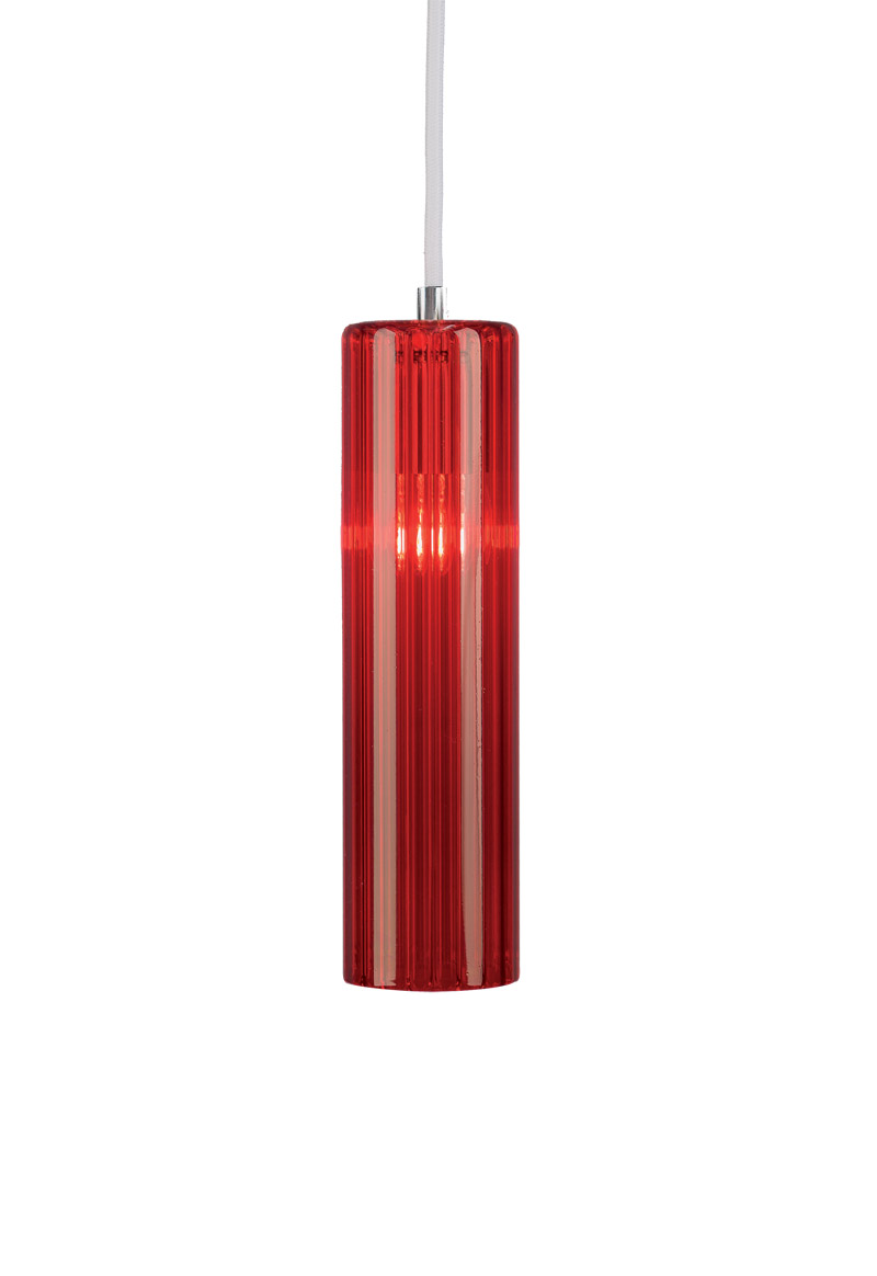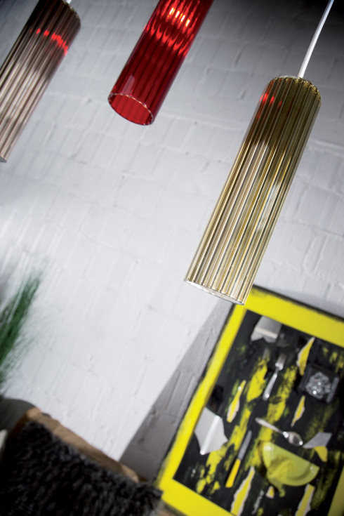 Hanging lighting fixture in furrowed or smooth transparent borosilicate glass. This lamp diffuses its light at 360° in the space.