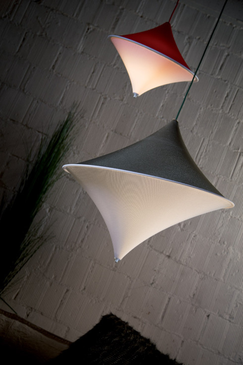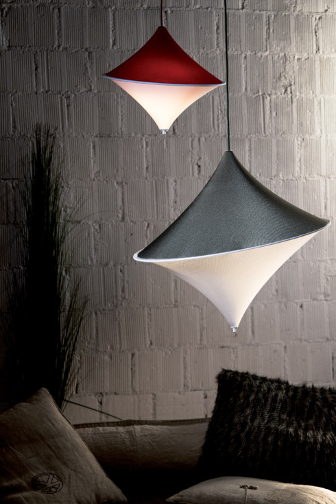 - General DetailsThe elasticity of Twist where two simple discs, available in technical stitch of different colors, united in an external iron ring, permits the inside insertion of a bar containing the light source that, placed a little aside, gives it form and tridimensionality, rending it unique at any side you look at.
