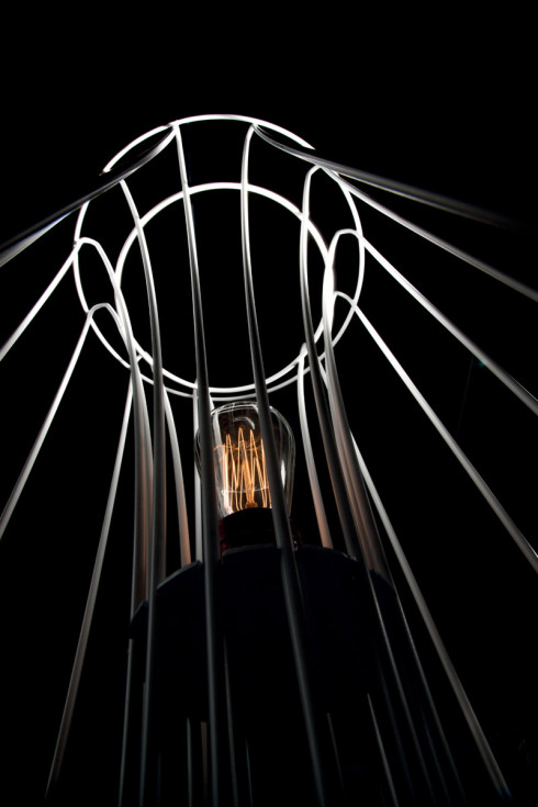 La lampada Black Hole è la capostipite della collezione Spacetime. BlackHole si ispira alla rappresentazione dei buchi neri, da cui la luce viene completamente inghiottita. Nella lampada invece la luce è protagonista e fa della struttura metallica un vero e proprio totem.